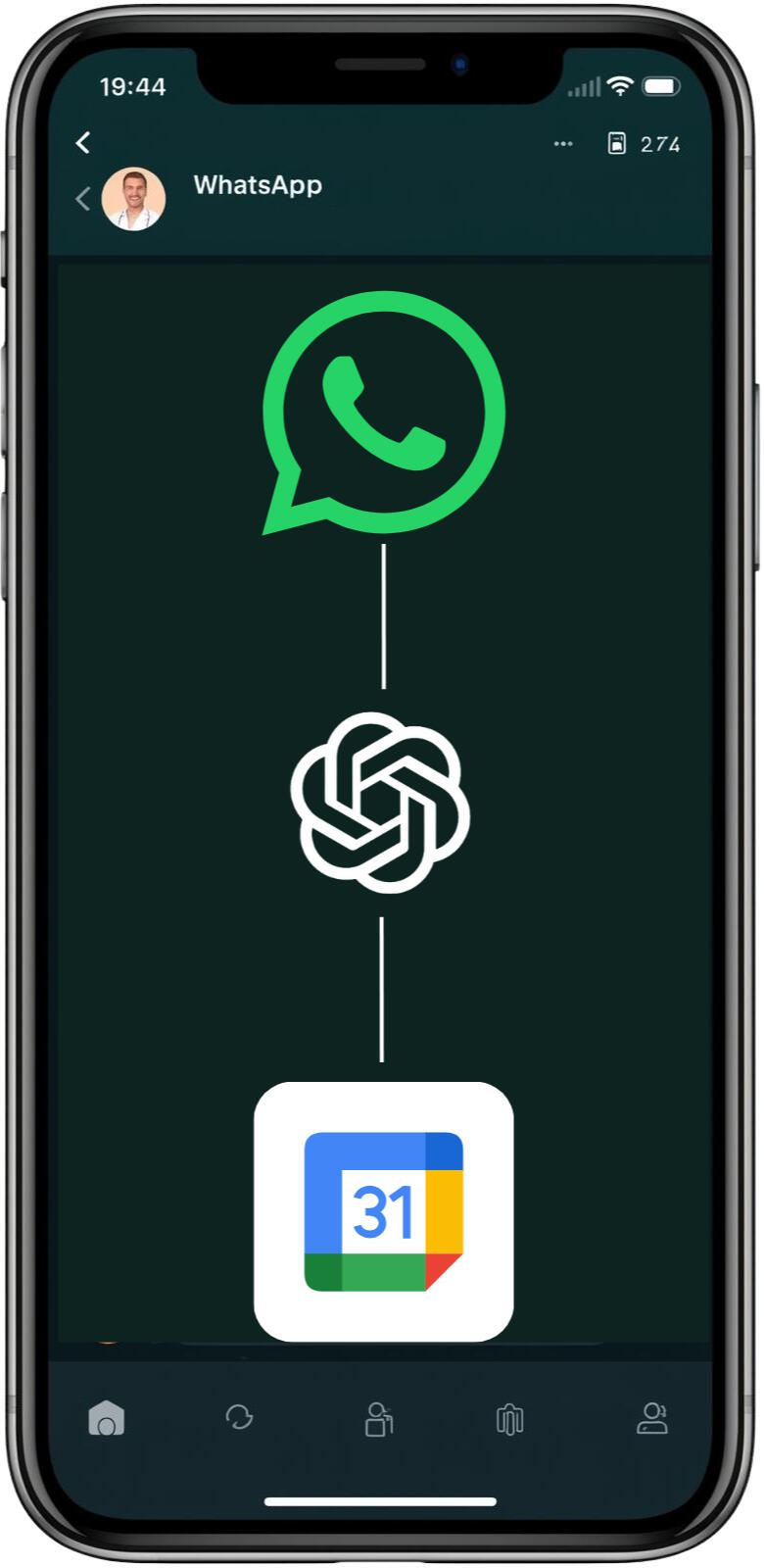 El paciente escribe en WhatsApp → la IA entiende → agenda en Google Calendar → confirma al instante.